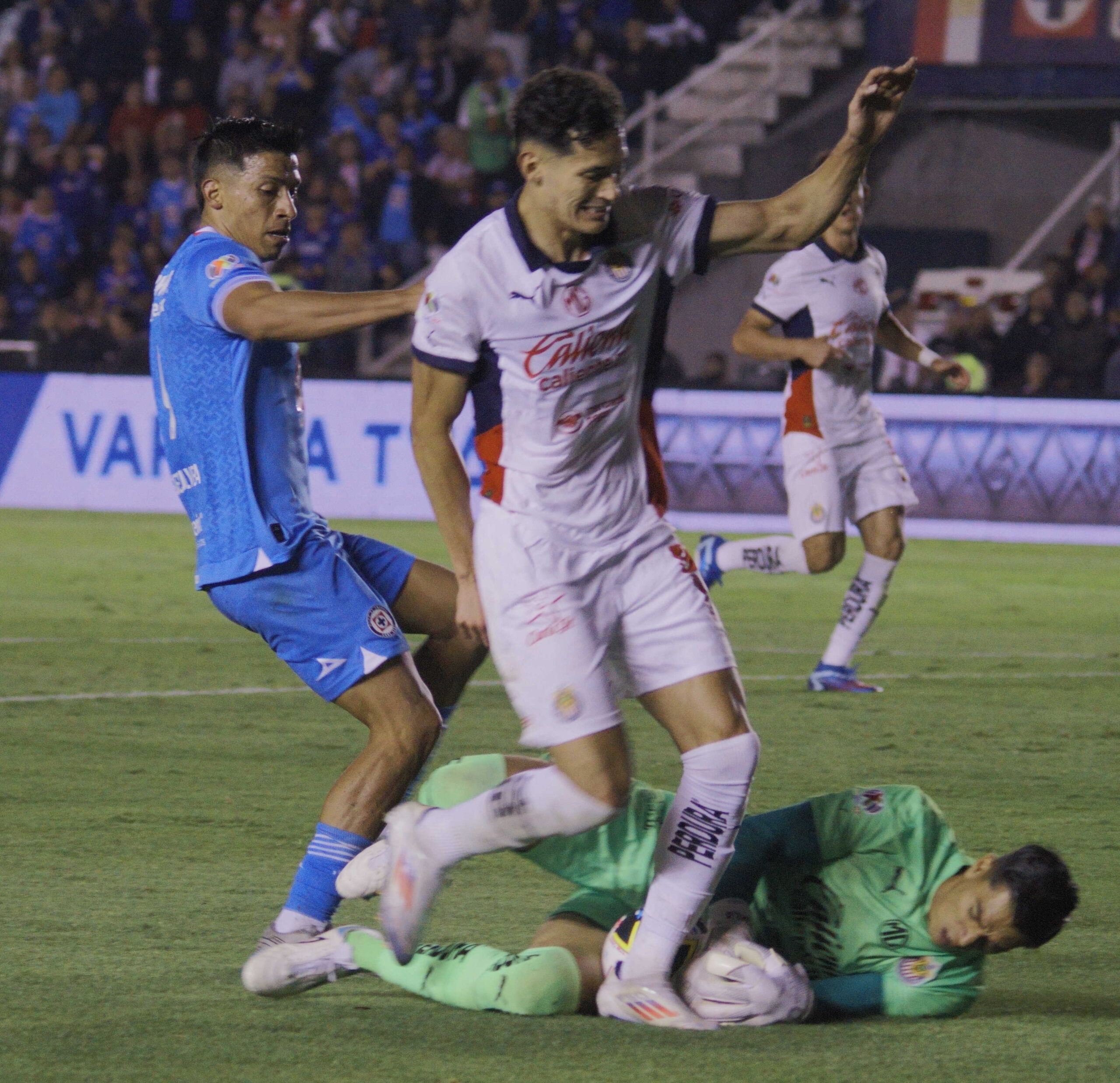 Sin embargo, el ataque rojiblanco se fue diluyendo y los celestes recobraron fuerzas y el control del balón, empezando a hacer su juego y echando apara atrás a las Chivas.