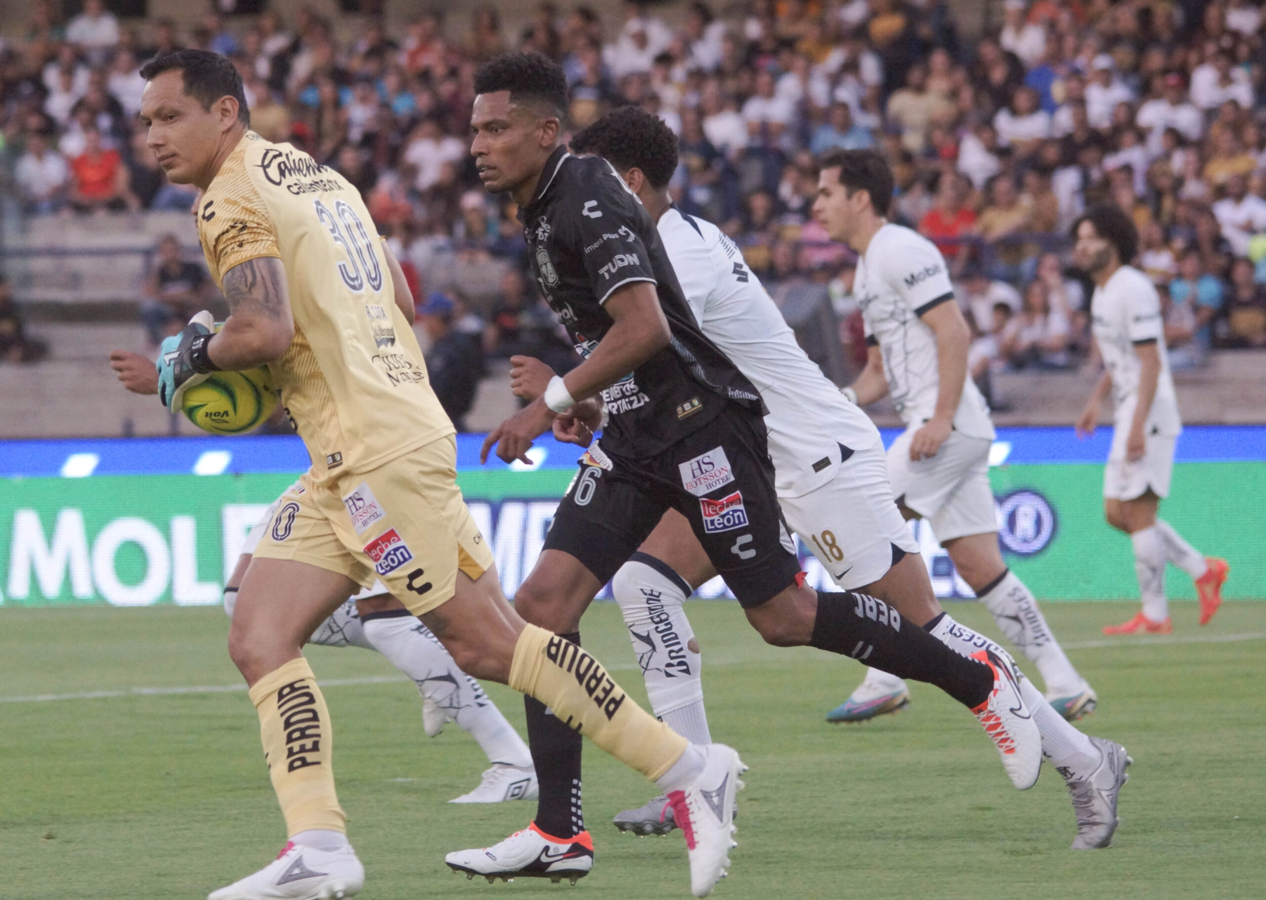 El complemento inició con ritmo, ya que en tres minutos, Pumas presionó en la salida de León, recuperó el balón y dejó a Funes Mori en el área para que este se quitara al arquero, pero su disparo se quedó en las piernas de uno de los centrales.